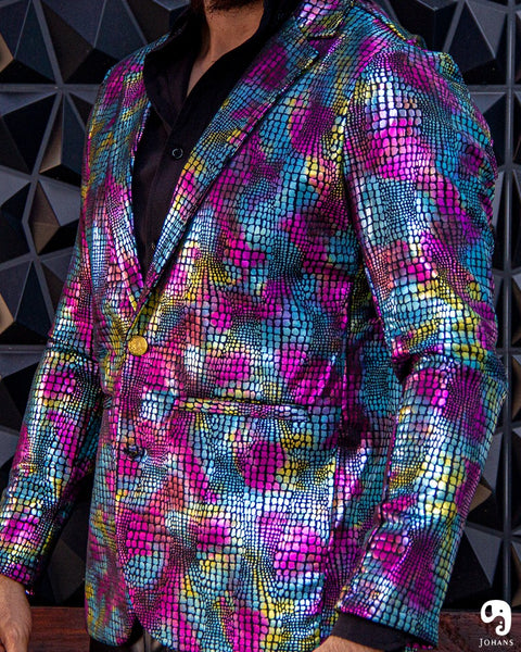 BLAZER SOLAPA V EXOTICO HOLOGRAMA ANIMAL PRINT VIBORA