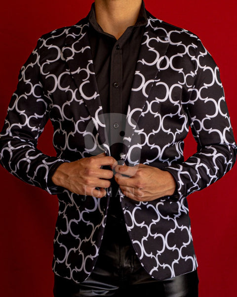 BLAZER SOLAPA V EXOTICO NEGRO CON GRECAS BLANCAS DOBLE C