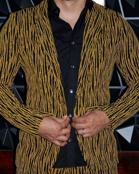 BLAZER SOLAPA V EXOTICO NEGRO CON RAYAS MOSTAZA