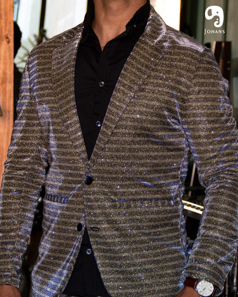 BLAZER SOLAPA V EXOTICO RAYAS MONOCROMATICAS BRILLOSAS
