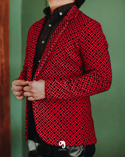BLAZER SOLAPA V EXOTICO ROJO CUADROS DE GAMUZA EN NEGRO