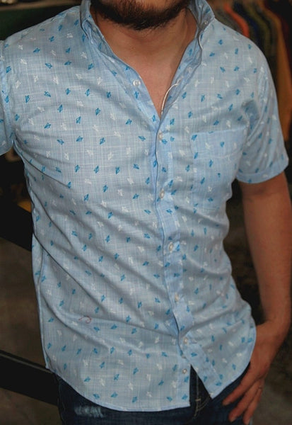 CAMISA MANGA CORTA ESTAMPADO AVIONES DE PAPEL EN AZUL CIELO