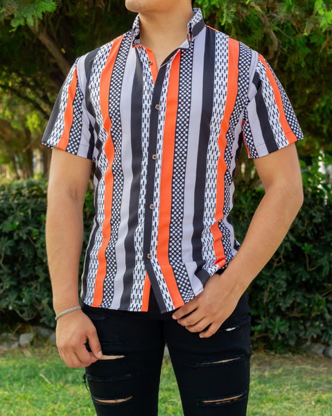 CAMISA MANGA CORTA ESTAMPADO FIGURAS DE RAYAS Y CIRCULOS
