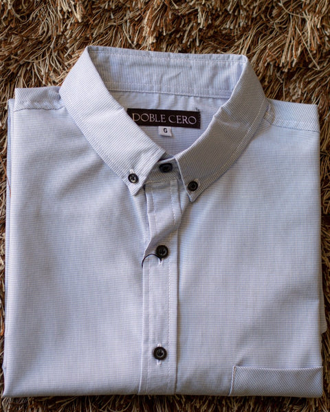 CAMISA MANGA LARGA CUADRO MILIMETRICO AZUL CELESTE