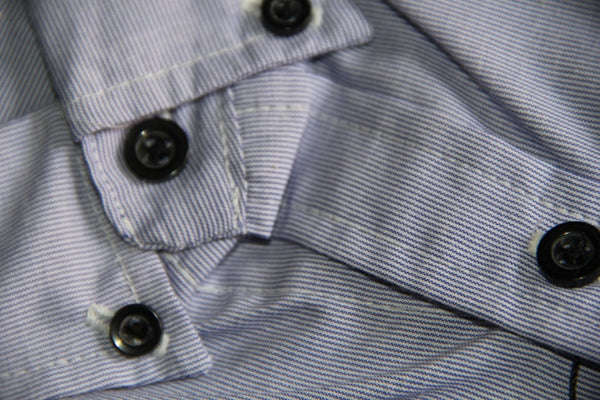 CAMISA MANGA LARGA ESTAMPADO AZUL DIMINUTAS LINEAS BLANCAS