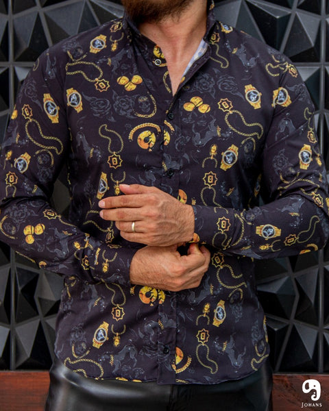 CAMISA MANGA LARGA ESTAMPADO NEGRA RELOJ CON CABALLOS