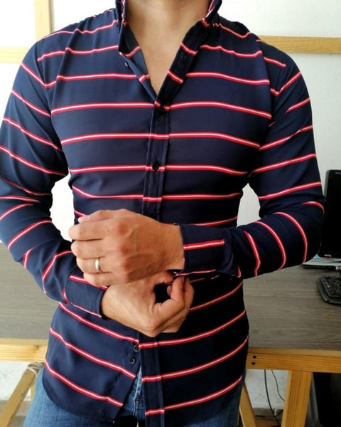 CAMISA PARA CABALLERO RAYADA, EN CORTE SLIM FIT.