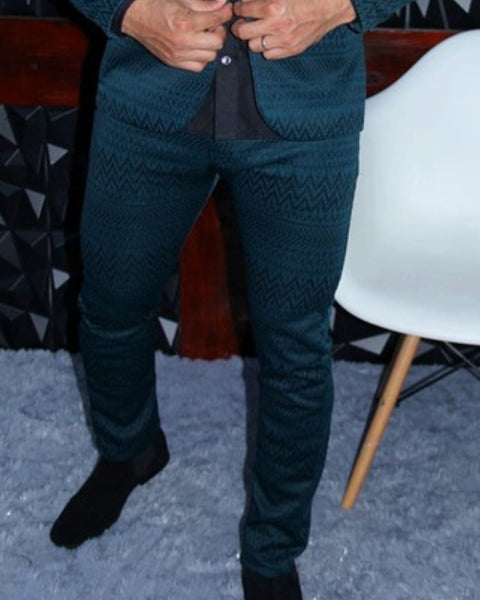 PANTALÓN CASUAL VERDE PETROLEO CON TEXTURA EN NEGRO