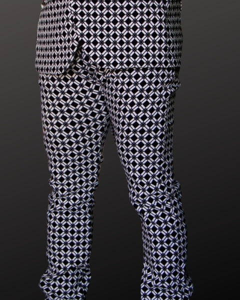 PANTALÓN EXOTICO BLANCO CON NEGRO, ROMBOS Y LINEAS ENTRELAZADAS