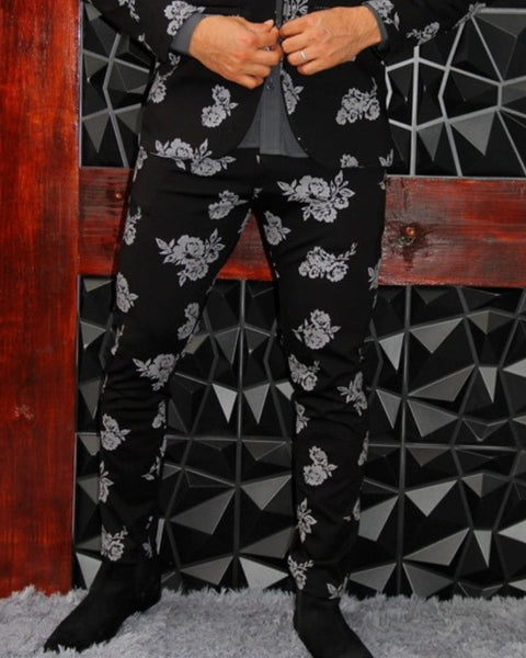 PANTALÓN EXOTICO NEGRO CON FLORES EN PLATA